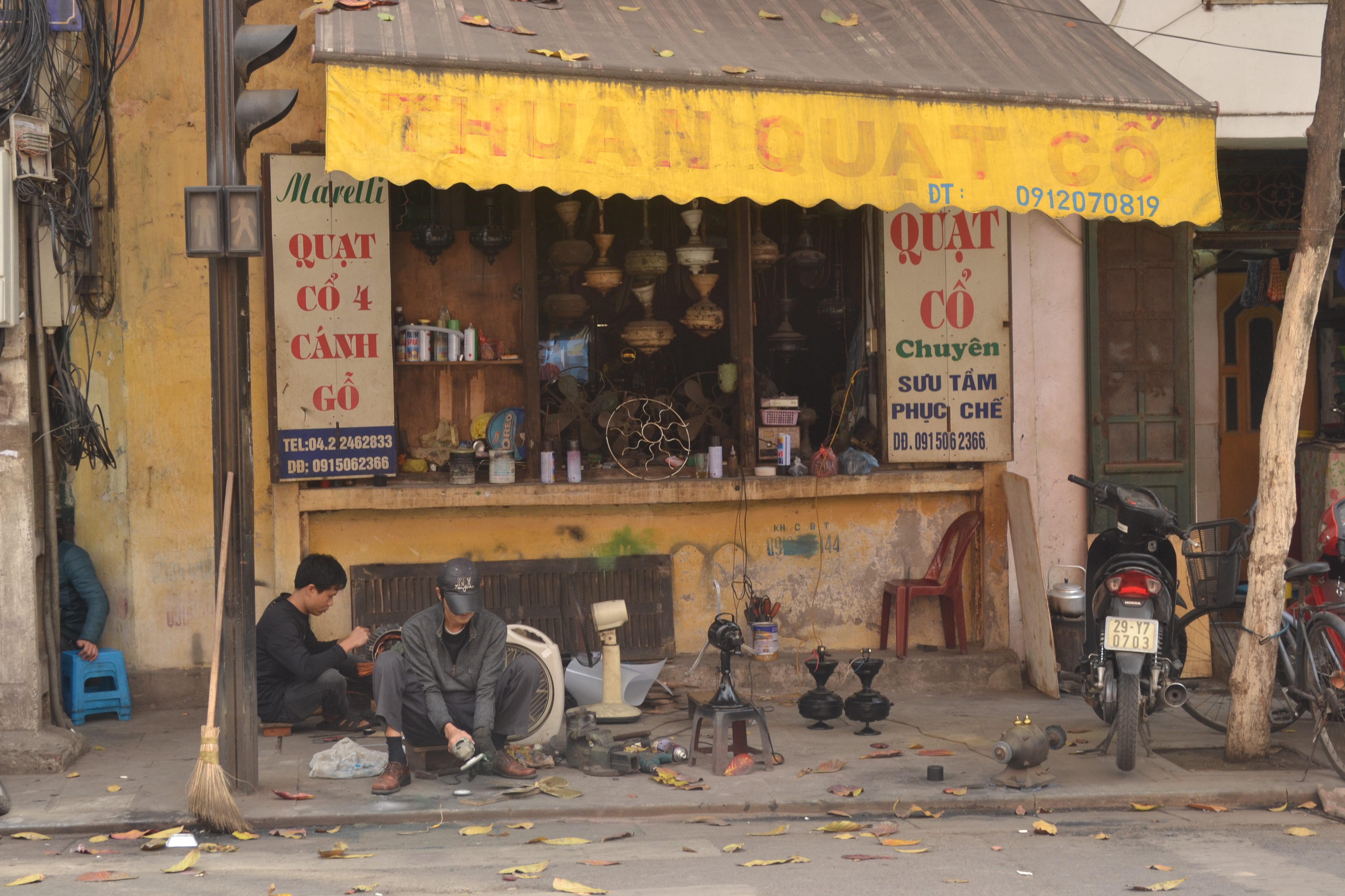 One shop sells nothing but heaters. Next door sells nothing but fans. Three doors further on sells lightbulbs. Two doors beyond that sells adaptors and leads. You go to one side of the road when your scooter needs tyres, to the other when it needs a new seat. And if it needs a new mirror as well, then you nip across town to the French Quarter. There are two streets on which every shop sells metal boxes, one street reserved for flowers and one for bamboo poles. Padlocks and door handles have half a street each, as have cooking salt and caged birds. Shoes get a crossroads of their own, but trainers, flip-flops and football boots have to share with army surplus. Musical instruments are lumped together with antiques, on the hunch, perhaps, that people who play instruments are likely to collect antiques.