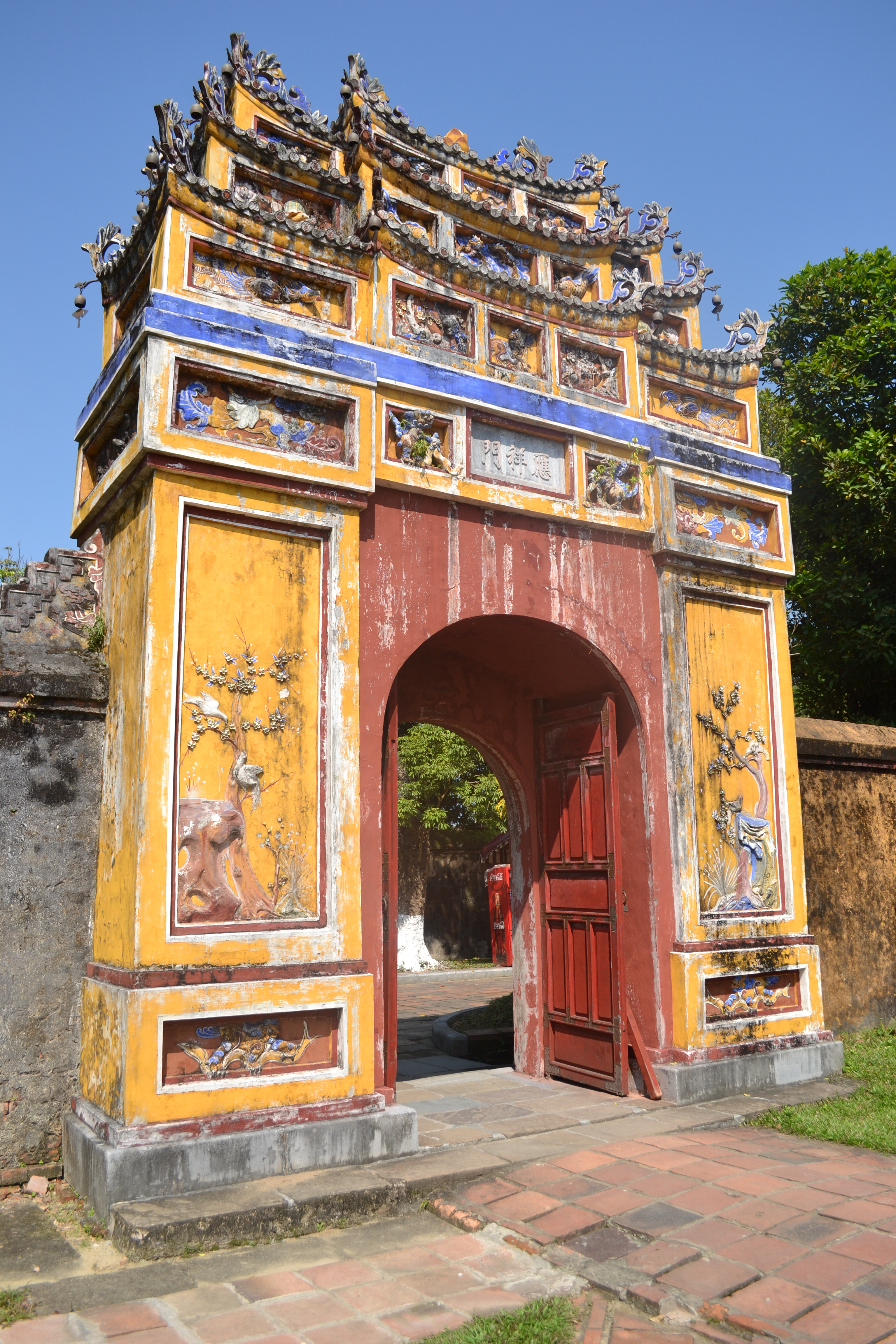 Huế was the capital for the Nguyển dynasty which ruled Vietnam from the start of the nineteenth century. A matryoshka of citadels, one inside the other, led through to the Forbidden Purple City, where the emperor lived with his concubines. There were moats and bastions and multi-tiered gateways; and palaces and temples, and gilded columns and carvings and fretwork, and cylindrical tiles surmounted by dragons. It was a place of exquisite beauty.