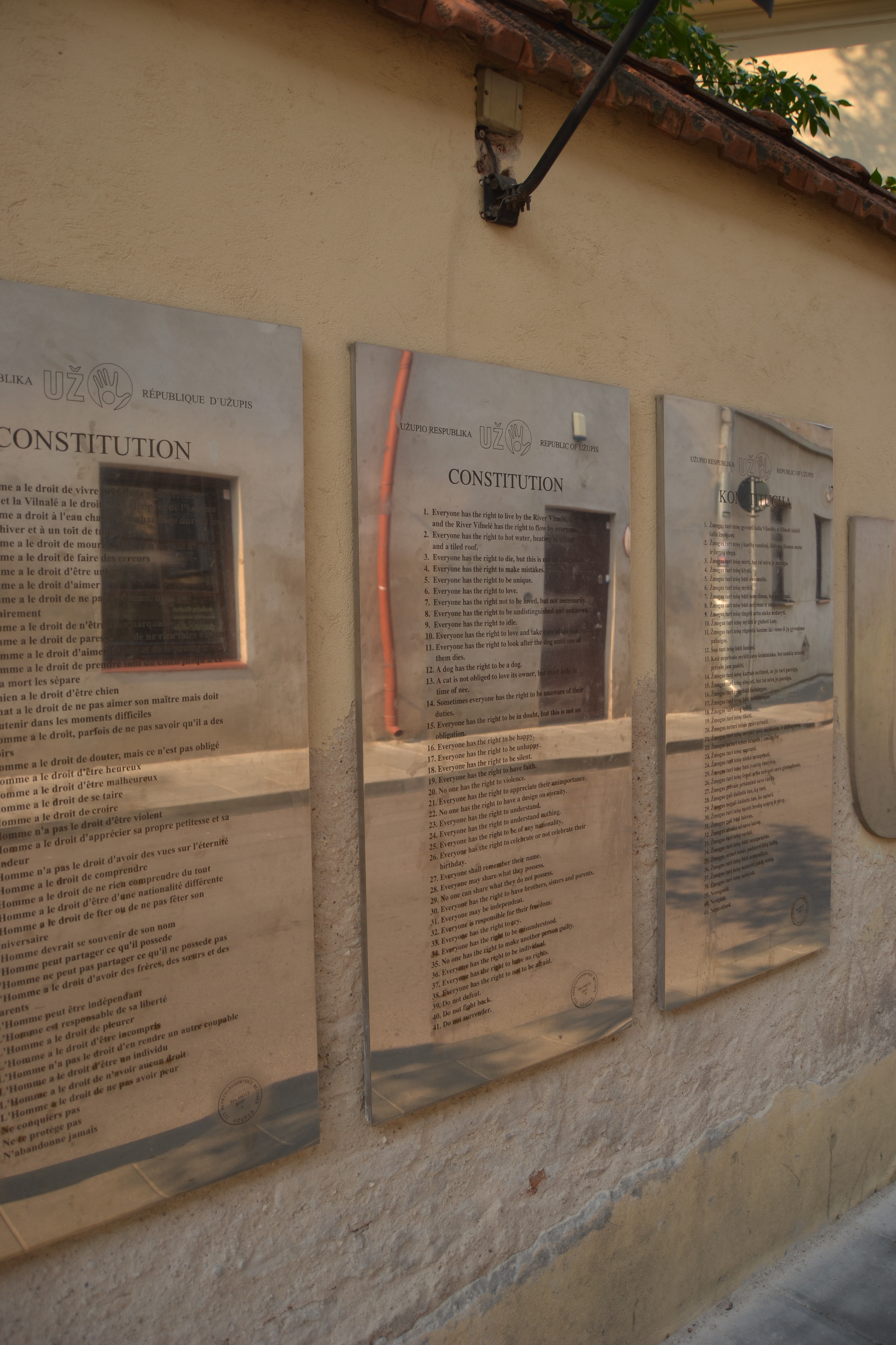 On one wall on a side road just off the main street, there are stainless steel boards engraved with the constitution in 23 languages. It is unlike any other constitution.