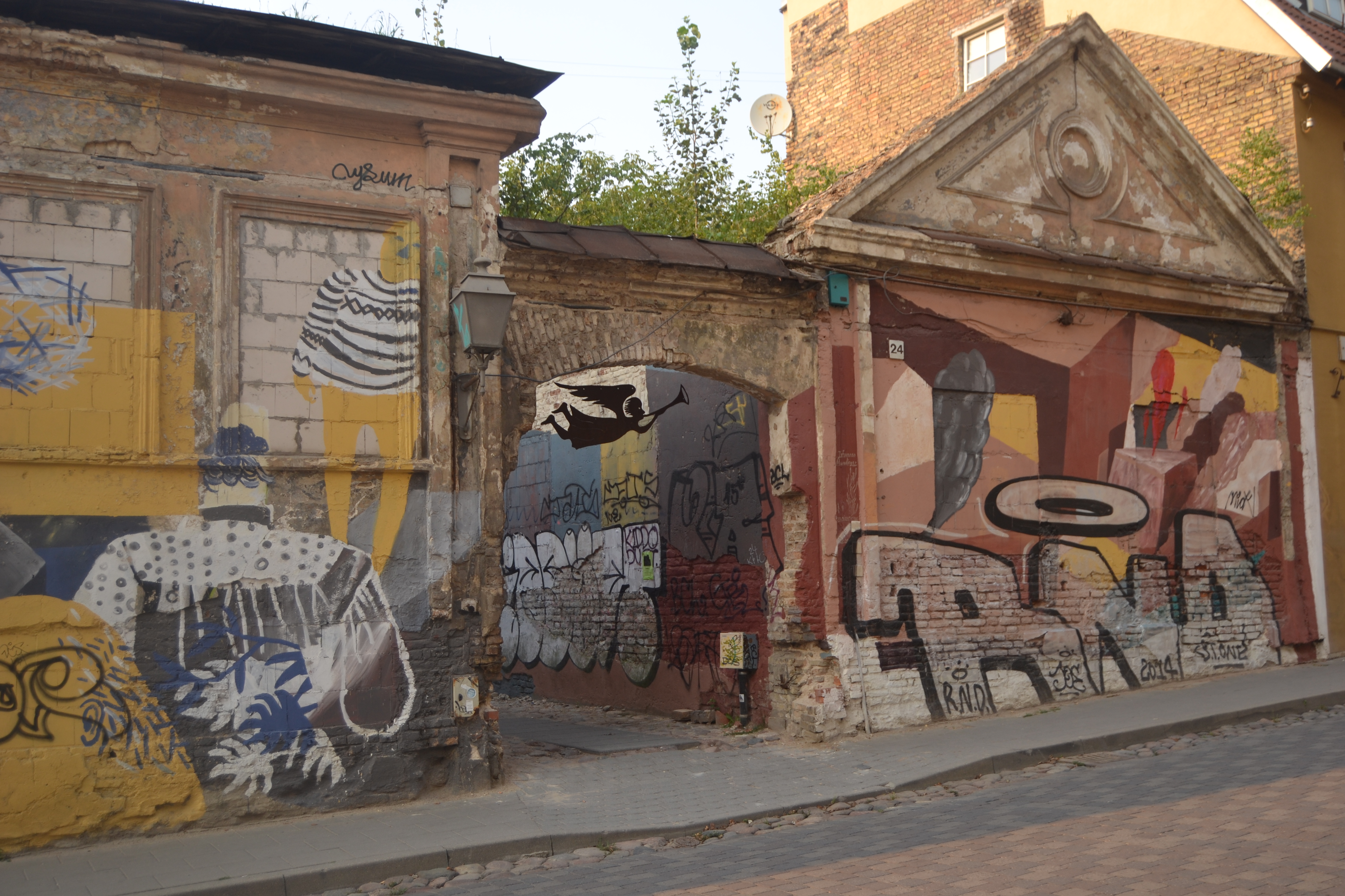 Užupis still has the broken-brick, rotten-wood, flaking-paint post-Soviet shabbiness which has mostly been gentrified out of the Baltic states, now; but there is a cheerful, arty atmosphere amid the dilapidation. The hipsters who drink at the fashionable bars coexist happily with the marginal types who squat in the crumbling apartments. Artist and Drunkard are popular occupations.