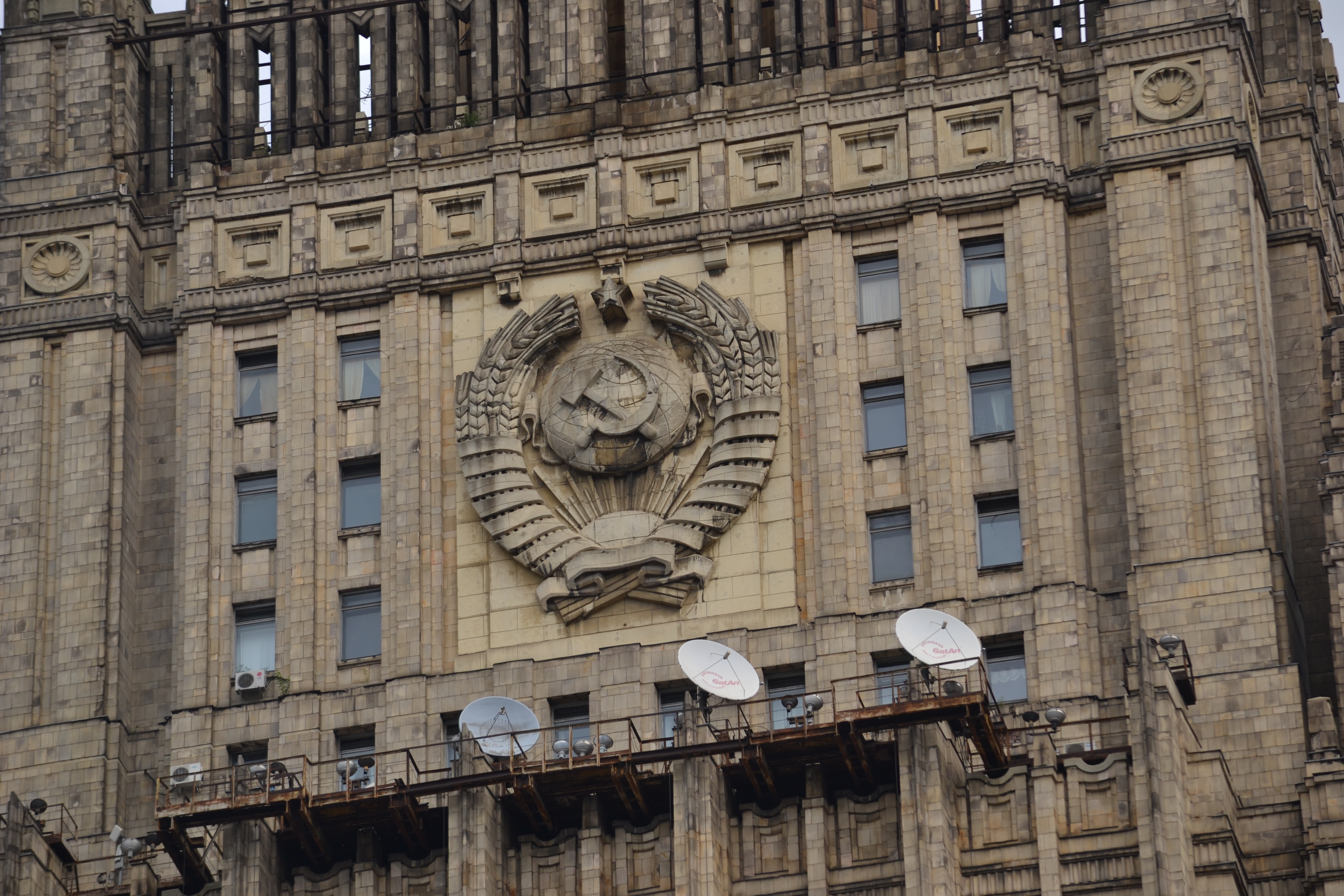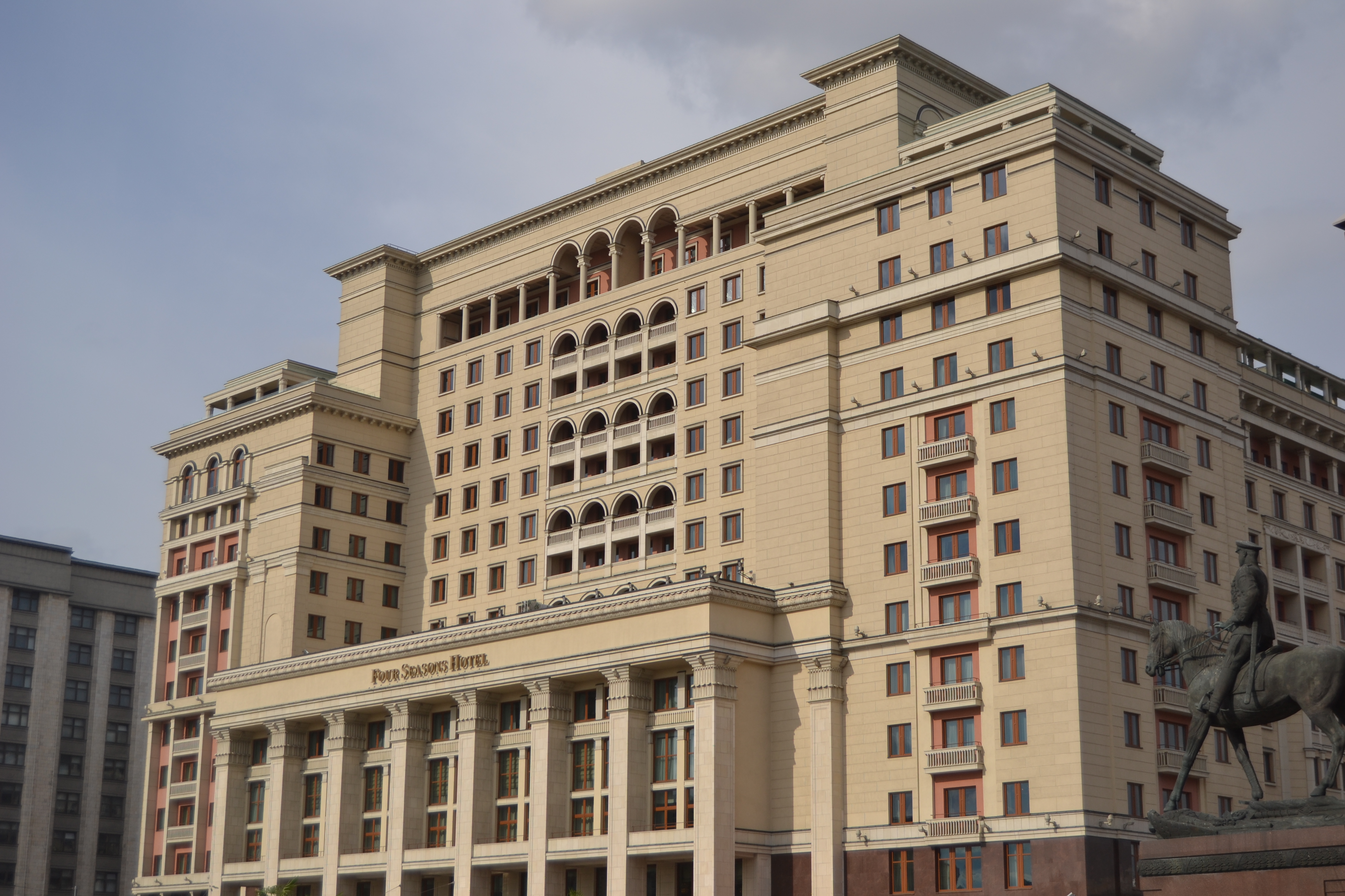 Stalin’s legacy is everywhere in Moscow, from the ruby glass Soviet stars on the Kremlin’s towers, through the famously extravagant Metro stations, the yet more extravagant All-Russia Exhibition Centre in the suburbs, to the skyscrapers known as the Seven Sisters, blending Modernism, Baroque and Gothic in the Stalin Empire Style, and the Four Seasons Hotel with its asymmetrical front, because the Greatest Genius of All Times and Peoples approved both of the designs he was asked to choose from and the architect dared not tell him he had goofed.