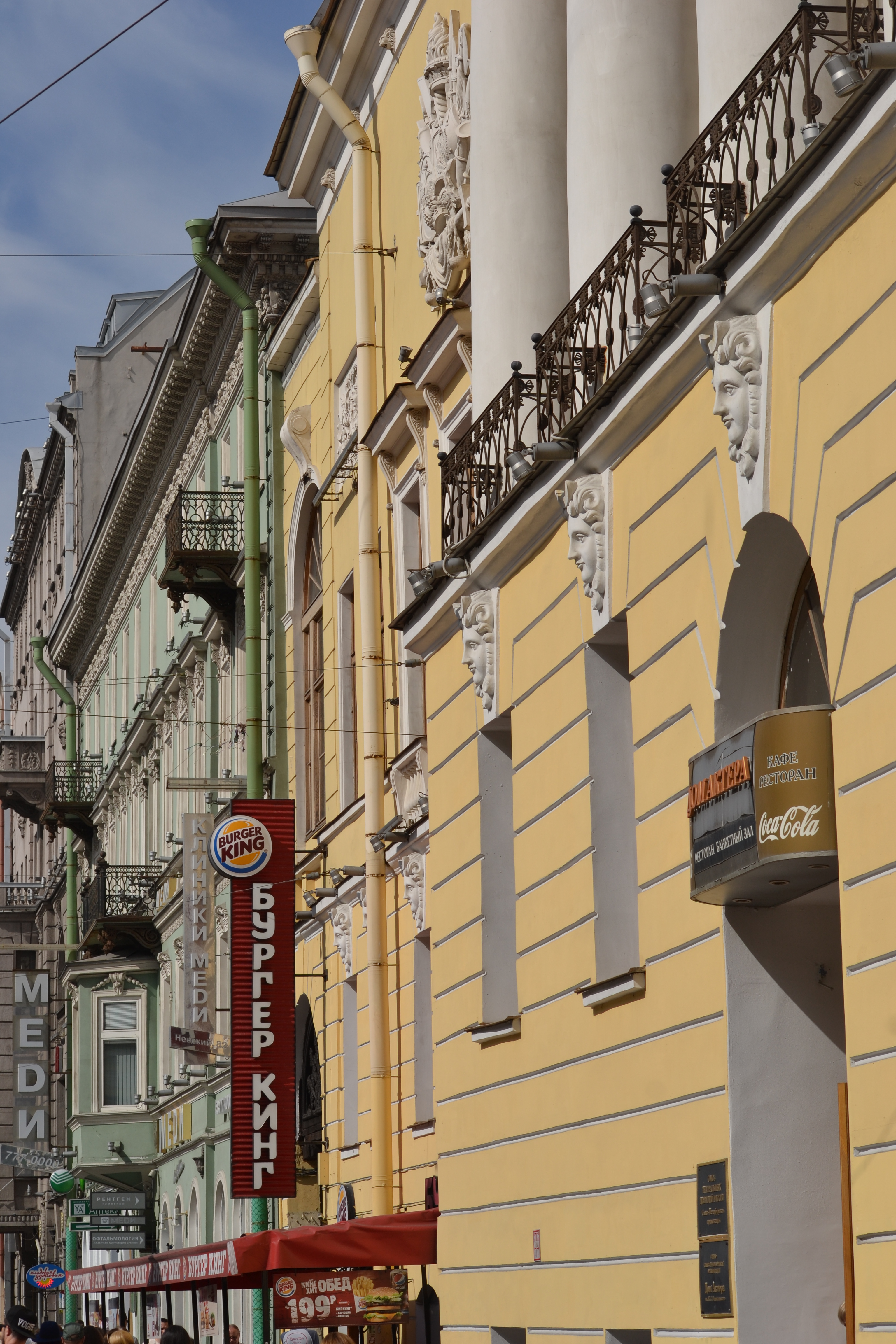 The facades of Nevsky Prospekt are still, by and large, what they were when Lenin returned in triumph to Finlyandsky Station. Some date from the time of Catherine the Great, most from before Nicholas II.