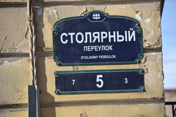 Brinko Lane tips out on Sadovaya Street and the first right takes you over the Kukushkin Bridge and onto Stoliarny Lane, reversing Raskolnikov’s route in the novel’s opening lines: