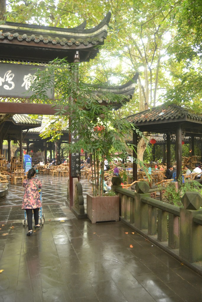 The chairs were fashioned from bamboo, the tops of the tables were battered. They were laid out under parasols, themselves under a canopy of trees. But shade is seldom needed in Chengdu. You are, as the saying goes, more likely to see a teahouse than a sunny day.