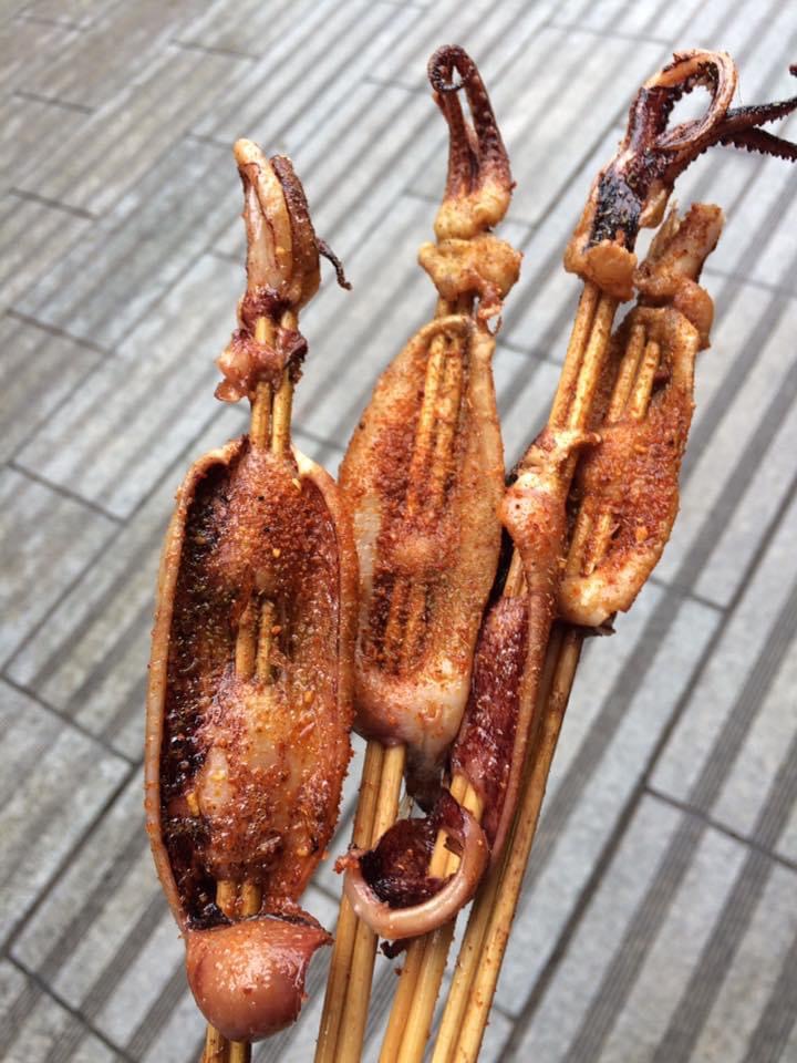 Both looked two sickly for me. I snacked instead on squid threaded onto skewers, sprinkled with chilli powder and grilled on a plancha.