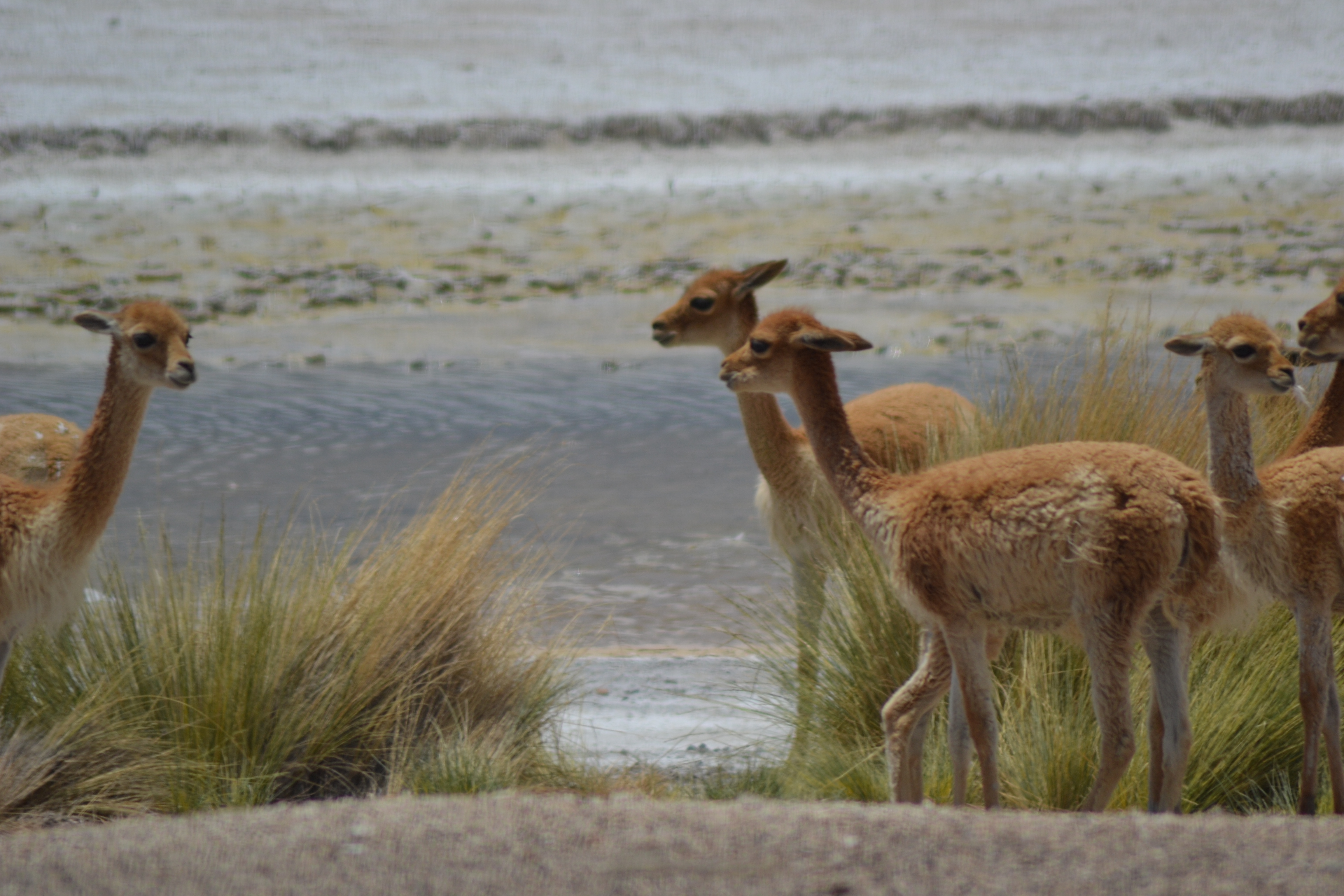Juanito strapped the backpacks on top of the jeep, warmed the engine, kicked the tyres and bundled us in. We tracked south again, to Chile the long way round. Out of the town and onto the plain, following a river, watched by vicuñas, the patrician cousins of the plebeian llamas. In the near distance behind them, a row of adobe huts, abandoned so long ago the roofs had rotted away. In the far distance, purple mountains speckled with grass, dusted with snow.