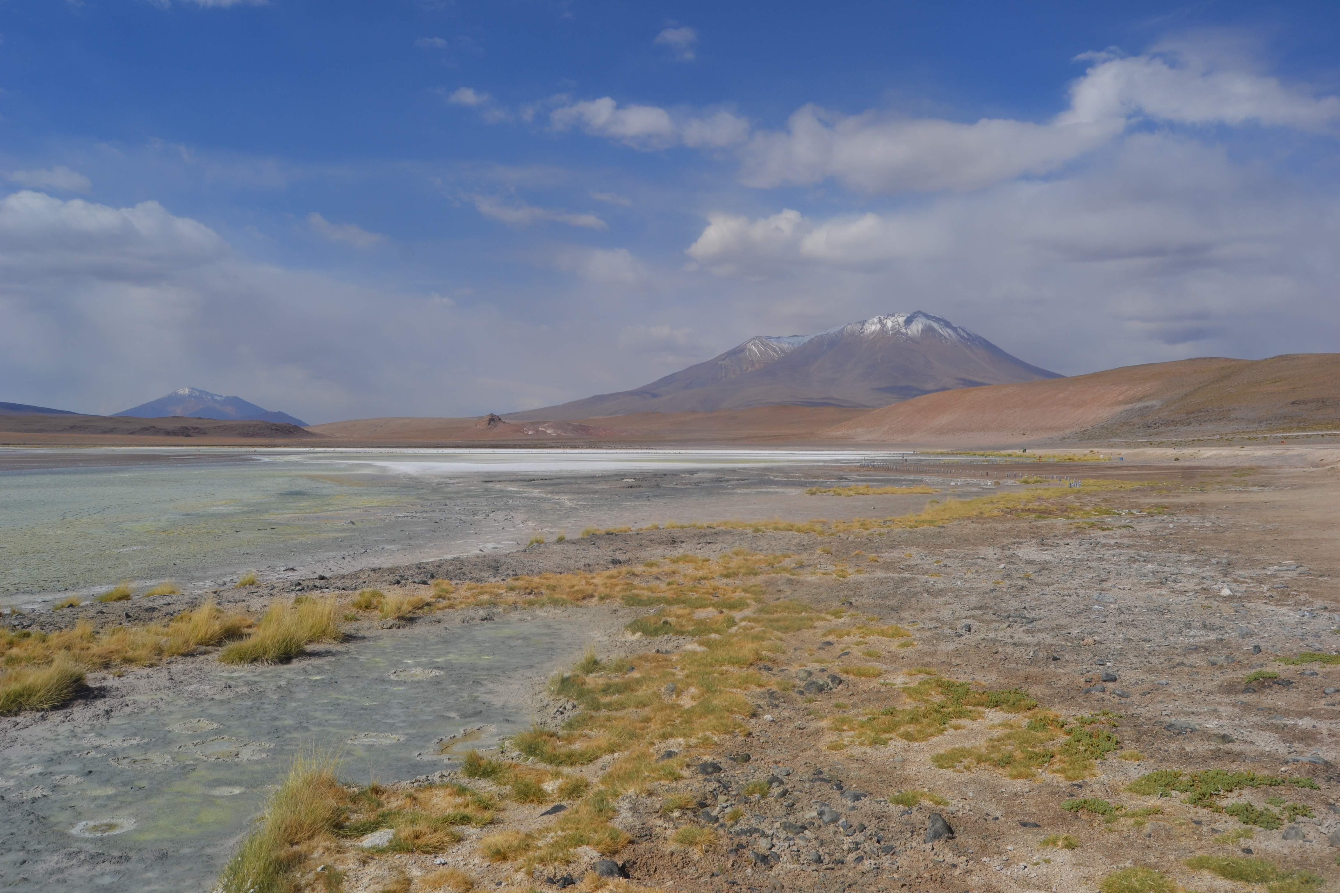 The setting, though, was stunning. It was on the banks of Laguna Hedionda (which sounds better in Spanish than it does in translation as the Stinky Lake), the only building in sight. The lake was framed by mountains with folds of purple, brown and blue, and a sprinkle of snow on the highest peaks. On islets of mud and around the edges, mineral deposits left bold swathes of yellow and green over a white undercoat.