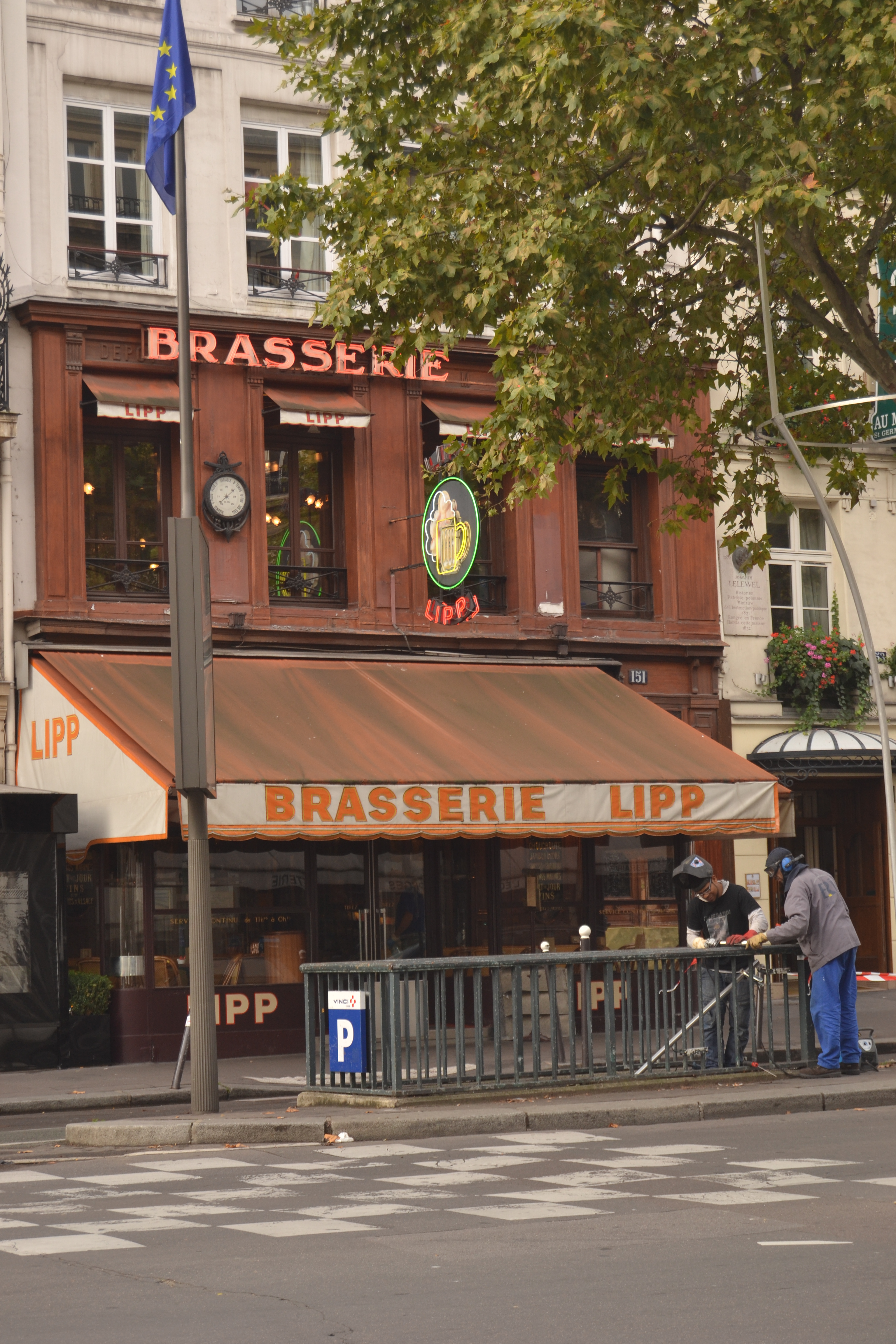 Brasserie Lipp features in A Moveable Feast, as well. After a failed attempt to do without lunch, Hemingway calls in there for a litre of beer (un distingué) and a potato salad: